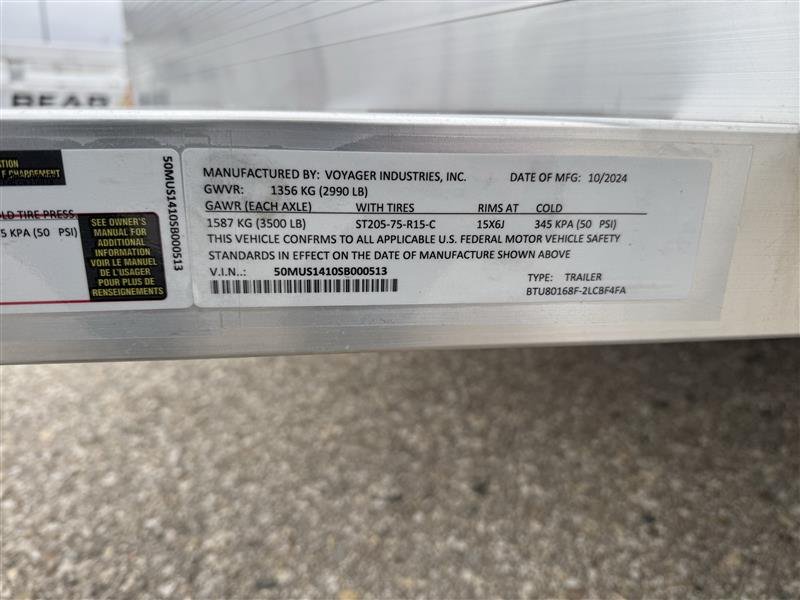 2025 Bear Track BTU80168F Aluminum Utility Trailer